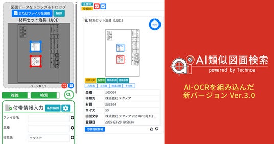 株式会社テクノア(本社:岐阜県岐阜市、代表取締役:山崎 耕治)は、『AI類似図面検索』の最新バージョン(Ver.3.0)を、2025年5月15日(木)より販売開始いたします。