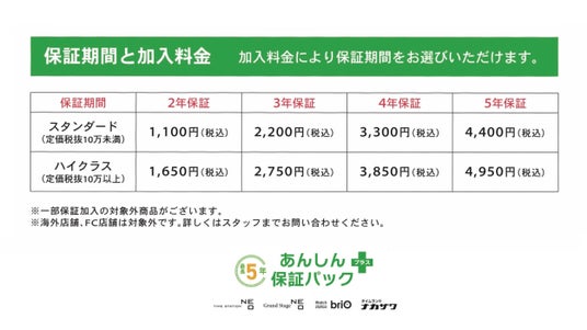ご購入時に、以下の保証期間からお選びいただけます。・2年保証プラン