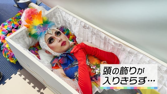 入棺体験には、布施美佳子さんがデザインした映え棺を用意
