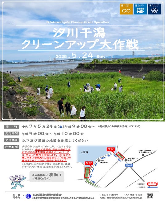 愛知県東部の豊橋市と田原市にまたがる汐川干潟で2025年5月24日(土)、ごみ拾いをする「クリーンアップ大作戦」が実施されます。きれいな汐川干潟を未来へ残そうと「530(ゴミゼロ)運動」の発祥の地、豊橋市の530運動環境協議会が主催し、参加を呼びかけています。
