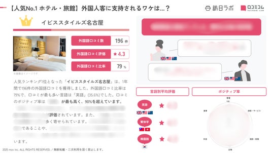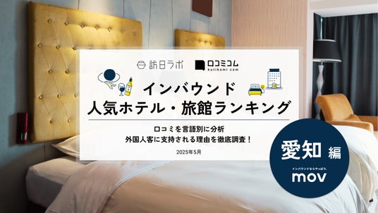業界最大級のインバウンドビジネスメディア「訪日ラボ」及び 店舗向け集客一元化プラットフォーム「口コミコム」を運営する株式会社mov(代表取締役:渡邊 誠、本社:東京都渋谷区、以下mov)は、愛知県のホテル・旅館に寄せられた最新の口コミデータから、独自の『インバウンド人気ホテル・旅館ランキング』を発表しました。