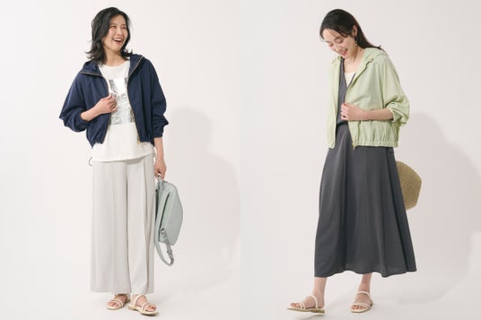 春夏にぴったりな新商品「UVメッシュフードパーカー」と「UVシアーブルゾン」を発売いたします。どちらの商品も、長袖でも涼やかにUV対策ができ、カジュアル過ぎずキレイ見えするデザインで日常使いしやすい商品です。