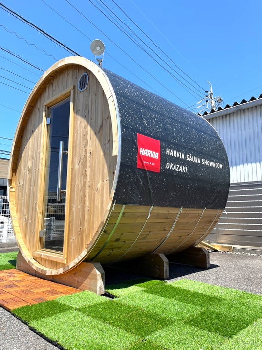 本場フィンランドHarvia製バレルサウナを展示。自宅やオフィスにも導入可能な手軽さと高品質な造りで、極上のサウナ体験を提供します。