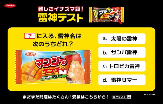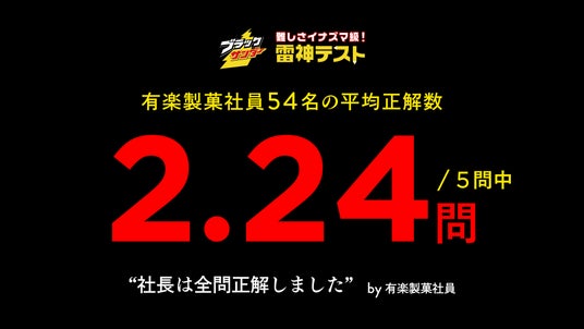 事前に有楽製菓社員および東大出身者に受検してもらったところ、正解数は2.24問/5問、1.06問/5問となりました。一筋縄ではわからない、ユニークさあふれる雷神名に思いを巡らせ、あなたの雷神力をぜひ試してみてください。
