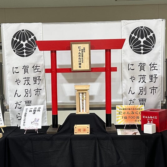 看板猫のタマちゃんヒメちゃんで知られる栃木県佐野市にある賀茂別雷神社の分社として会場内に祀られた神社が登場。愛猫の健康と幸せを願って御祈祷した御朱印、御守、猫御守、絵馬、御朱印帳などをにゃんだらけ会場限定で授与します。