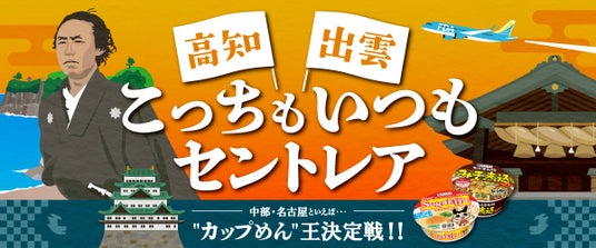 セントレア発着の高知・出雲路線にご搭乗の皆様に、中部地方のご当地即席カップめん2種類の中から1つをプレゼント!プレゼントとしてより多く選ばれた商品を「セントレア“中部・名古屋のカップめん王”」に決定!