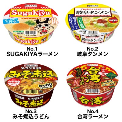 延べ1,809 件の投票の結果、1 位「SUGAKIYA ラーメン」(得票率45.2%)、2 位「みそ煮込うどん」(得票率36.3%)となり、本キャンペーンのプレゼント商品として選ばれました。