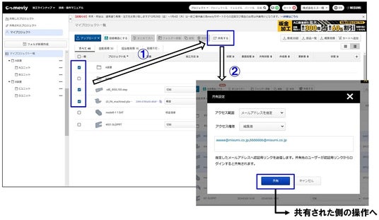 今回、システム開発により、プロジェクト共有機能を実装、部品情報をアカウント間で共有できる環境を構築することでmeviy上の部品情報(プロジェクト)やフォルダを簡単に共有、共同編集できるようになります。