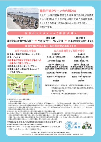 一般社団法人海と日本プロジェクトin愛知県は、2025年5月24日(土)にラムサール条約登録湿地である「藤前干潟」周辺の漂着ごみを清掃して海洋ごみを減らすことを目的とする「’25春の藤前干潟クリーン大作戦!」を開催します。このイベントは、次世代へ豊かで美しい海を引き継ぐために、海を介して人と人とがつながる“日本財団「海と日本プロジェクト」”の一環です。
