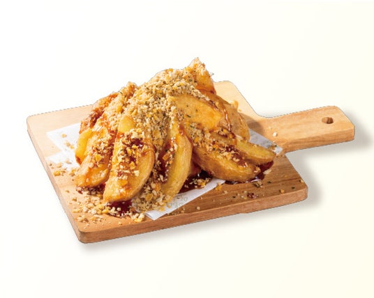 〈ガーリックポテト〉は、甘辛いハニーガーリックソースに、フライドガーリックの香ばしさを効かせた“ダブルガーリック”テイスト。口に広がるコクと風味の重なりが、あとを引く美味しさです。