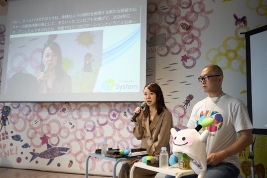 オープニングイベントの最後には、東急不動産SCマネジメント 運営推進本部広域渋谷圏推進部原宿プロジェクト推進課課長兼東急プラザ原宿「ハラカド」・東急プラザ表参道「オモカド」総支配人 小柴るみ氏と、株式会社アイシン BR YYSystem事業推進部 中村正樹氏が、「世界に字幕を添える展」の開会宣言をしました。ハラカドが先陣を切り今回の社会実験に取り組むことについて、小柴氏は「ここハラカドから、社会のスタンダードを変えていきたいです。誰もが気兼ねなく過ごせる場所を目指して、今回のイベントをきっかけに挑戦をし続けます。」と語りました。また、中村氏は「この取り組みは、ただの技術導入ではなく、社会そのものを変えていく第一歩です。国内外問わず色々なところから人が集まるこのハラカドから世界へ、誰一人取り残さない新たなスタンダードを広げていていくきっかけになることを期待したいです。」と話し、オープニングイベントを締めくくりました。