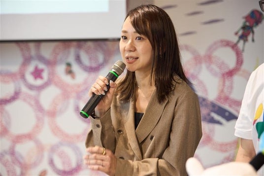 イベント前半ではハラカド総支配人の小柴るみ氏、YYSystemの開発責任者で株式会社アイシンBR YYSystem事業推進部の中村正樹氏、「世界に字幕を添える展」の公式アンバサダー・吉田まり氏が登壇し、「世界に字幕を添える展」の開催背景や意義について話しました。小柴氏は、「ハラカド全館の様々な日常のシチュエーションの中にYY Systemというコミュニケーションシステムを導入し、“字幕を添える”ことで、聴覚障がいのある方も、インバウンドの方も、誰もがコミュニケーションをとることができる催しを実施していきます。」と概要について話しました。その後、「このイベントを通じて、聴覚障がいをお持ちの方や訪日外国人観光客のリアルな声を引き出し、誰もが過ごしやすい社会をつくるために何が必要かについて、一緒に考えるきっかけを作ることができればと思います。」と、本イベントに込めた想いを語りました。