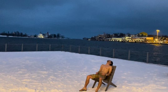 朝の光の中、冷たい川に身を浸してサウナに入る。