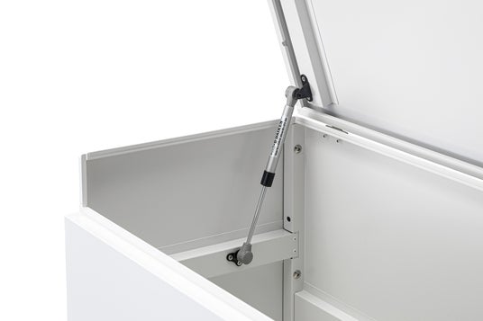 左右に搭載されている「ガスダンパー」により、上扉を閉める際に手を放しても、扉がゆっくりと閉まるので指はさみの危険性を減らします。