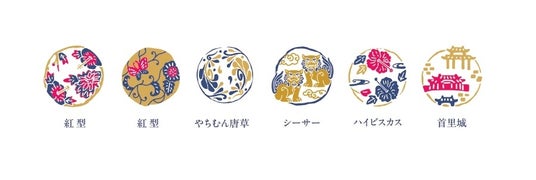 沖縄ならではの6つのモチーフを伝統的な丸紋にデザイン