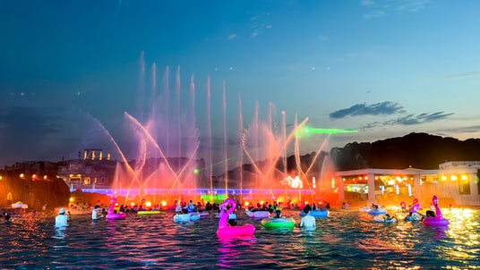 スプラッシュ ビーツ ファウンテンナイトプール仕様の噴水ショーです。ライトアップされた噴水と音楽、照明が融合し、ナイトプールをさらに盛り上げます。