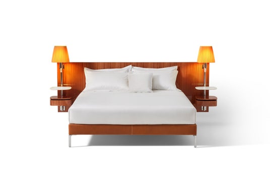 官能的で荘厳なヘッドボードは1サイズで、光沢のあるマホガニー、エボニー、マットなシカモアの3種類の仕上げからお選びいただけます。フィリップ・スタルクとの綿密な共同研究により、貴重な素材と濃厚でエレガントなニュアンスから、それぞれのエッセンスにふさわしい仕上げの組み合わせが入念に開発されました。