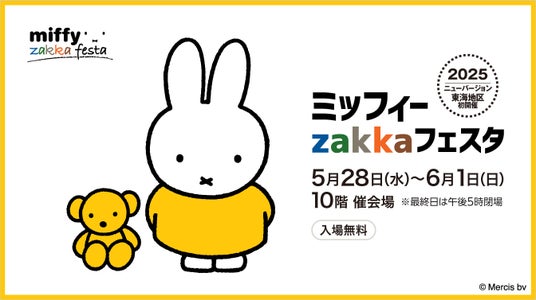 ジェイアール名古屋タカシマヤでは、5月28日(水)から6月1日(日)の期間中、2025年版NEWバージョンとして”東海地区では初”となる「ミッフィーzakkaフェスタ」を開催します。1955年オランダの絵本から誕生したミッフィーは、世代を超えて世界中の人々に親しまれ、今年誕生70周年を迎えました。ミッフィーの絵本はすべて、生みの親である絵本作家ディック・ブルーナがそれぞれの色にメッセージを込めて選び抜いた色「ブルーナカラー」のみで表現されています。本催事ではブルーナカラーのイベント限定品をはじめ1,000点以上のグッズを取り揃えるほか、会場には70周年ウォールフォトスポットなどが登場します。