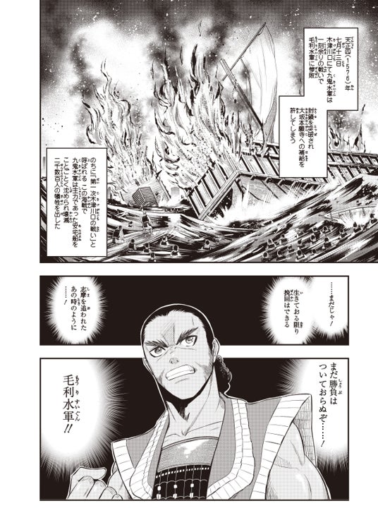 信長の伊勢長島一向一揆鎮圧で戦功をあげた嘉隆は、織田軍と敵対する大坂本願寺方の毛利水軍と戦うが、大敗してしまう。嘉隆は信長の命で巨大な鉄甲船を建造し、再び毛利水軍に挑む!