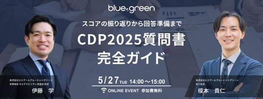 株式会社エスプールブルードットグリーン(本社:東京都千代田区、取締役社長:八林公平)は、2025年5月27日(火)14:00から、「スコアの振り返りから回答準備まで CDP2025質問書完全ガイド」セミナーを開催します。