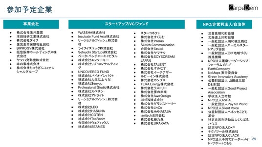 - 青臭いと思われても、社会課題に真剣に取り組みたいと考え、同志となる企業や人との出会いを求めている方