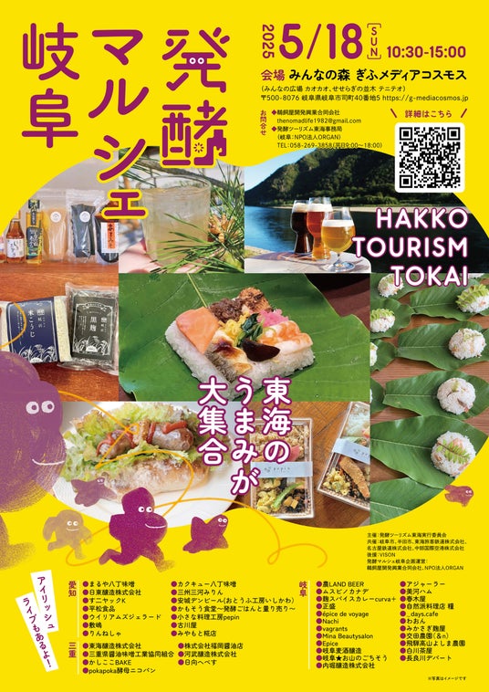 開幕を記念して、5月18日(日)には、メイン展示会場でもある岐阜市の「みんなの森 ぎふメディアコスモス」にて「発酵マルシェ岐阜」を開催。「発酵ツーリズム東海」のオープニングセレモニーも行います。