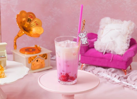 マリ―をイメージしたピンク色のシチューライスやマリーやトゥルーズ、ベルリオーズをイメージしたパングラタン、マリーたちのシーンをイメージしたロマンティックなリゾットプレート、マリーのサファイアのような瞳をイメージしたパフェ、キャラクターをイメージしたドリンクなど、ピンク色を活かした可愛いフォトジェニックなメニューをご用意いたしました。
