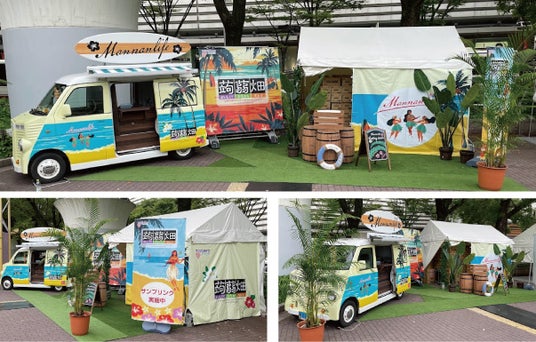 「蒟蒻畑」の特長である、もちむち食感をご体感いただくために、キャラバンカーを構えサンプリングを行います。