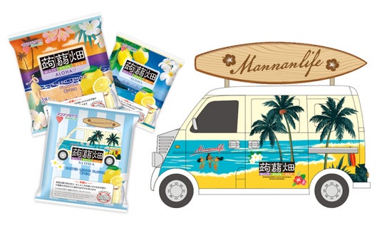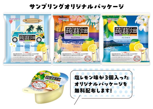 マンナンライフのフラダンスのCMにちなんだハワイを感じる特別パッケージで、新商品「蒟蒻畑塩レモン味」をお試しいただけます。