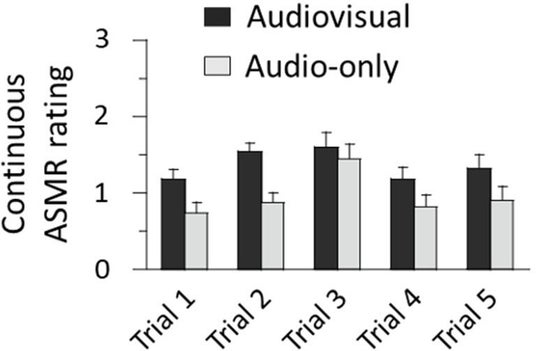 本研究では、2つの実験を実施しました。大学生の男女計 66 名に実験への参加を依頼して、様々な ASMR 動画あるいは自然環境映像を視聴してもらいました。視聴中の参加者はゾクゾク感や心地よさの程度を継続的に報告しました。