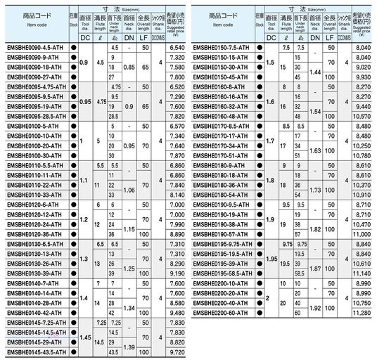 - 工具径のラインナップを大幅に拡大しました。ワイヤー放電やリーマに合わせた工具径の選択で後工程の取り代を調整できます。