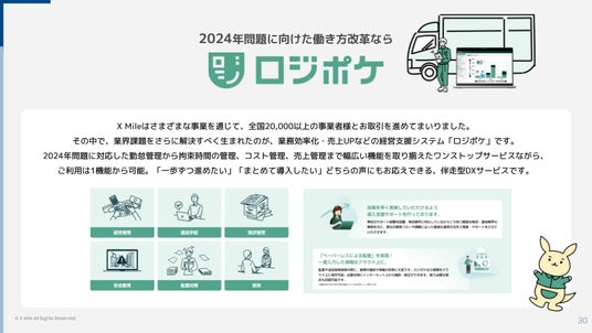 運輸業界では社会問題化する日本最大のドライバー不足と同時に「多重化下請け構造」や電話・紙・FAXを中心とした「低い労働生産性」など、多くの解決すべき業界課題が存在しています。X Mileは、それらをソフトウェアによって解決し、事業者の売上最大化・コスト改善を図ることで、インフラ産業である運輸業界を支えています。