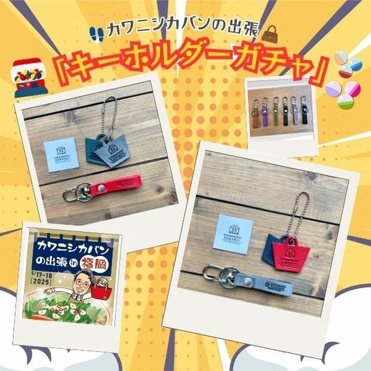 イベント内容 カワニシカバン商品の展示会/イベント限定「キーホルダーガチャ」/会場でオンラインからカバン購入でステッカープレゼント