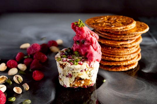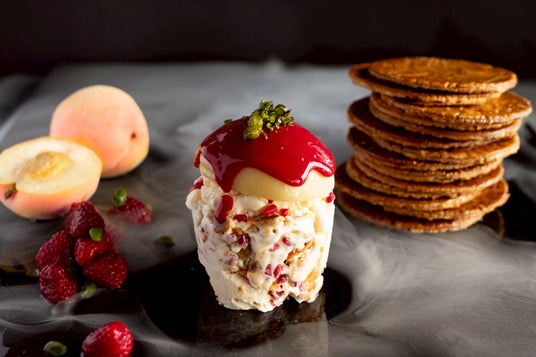 パイやシャーベットの分量、テクスチャーの組み合わせ、そして何より“冷たいストーンの上で直前に仕上げる”というライブ感ある提供方法にこだわることで、出来立てのフレッシュさと濃厚な満足感の両立を実現しています。