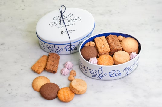 シェ・シバタのスペシャリテ「ヴィジタンティーヌ」や人気のクッキー缶「フルールドール」、先行発売のクッキー缶「サブレ デラ バニーユ」などをご用意しております。