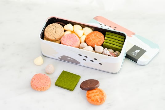 ペールトーンのカラフルな色でデザインされた缶の中に、クッキーをぎっしり詰めました。
