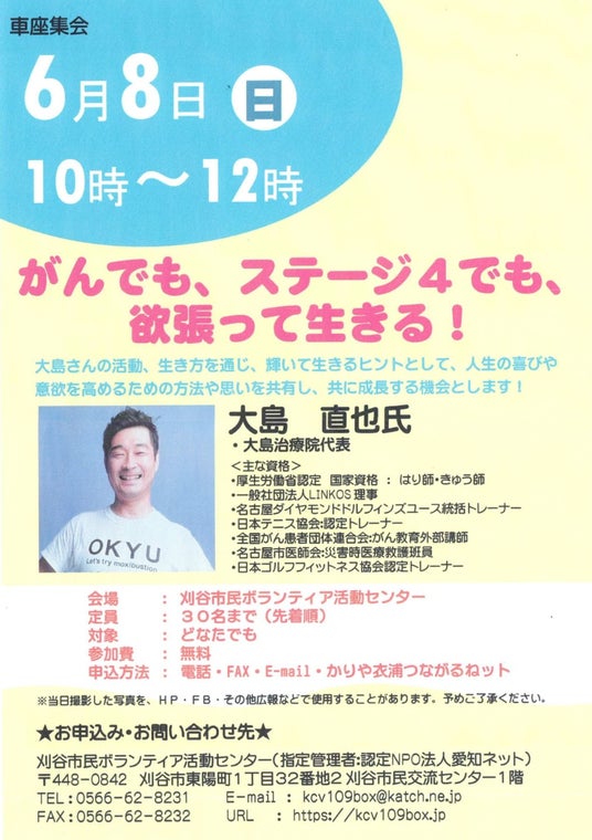 また、刈谷市にお住まいの方でなくてもご参加いただけますので、お時間許します方はぜひご参加くださいませ。