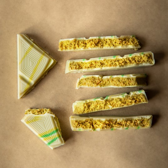 チョコレートの優しい甘さと、濃厚なピスタチオ、そしてカダユフのサクサク食感がくせになる新感覚スイーツの「ドバイチョコレート」。