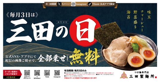 株式会社エムピーキッチンホールディングス(本社:東京都渋谷区、代表取締役:村上竹彦)傘下の株式会社エムピーキッチンが運営する『つけ麺専門店 三田製麺所』は、2025年3月に50店舗目の出店を果たしました。これを記念して、3月24日(月)~6月30日(月)限定5商品を、約3か月にわたり入れ替えで販売しております。