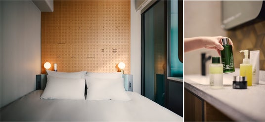 ランドリールームには、ホテルの滞在時に便利なグッズを販売する自動販売機も。ドリンクや軽食に加え、athletiaのスキンケアセットや、JASON MARKKのシューケア、FRUIT OF THE LOOMとのコラボレーションアイテムも購入可能です。