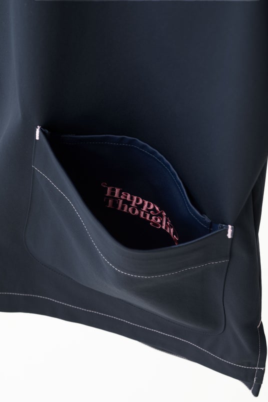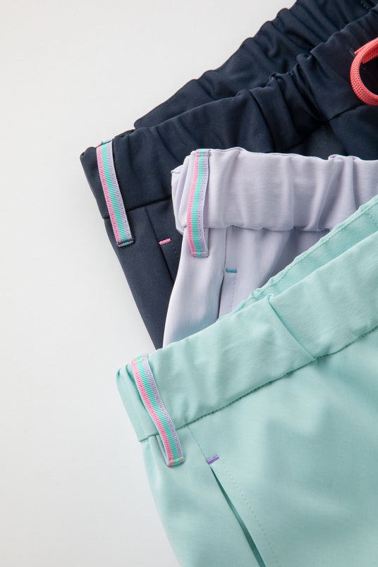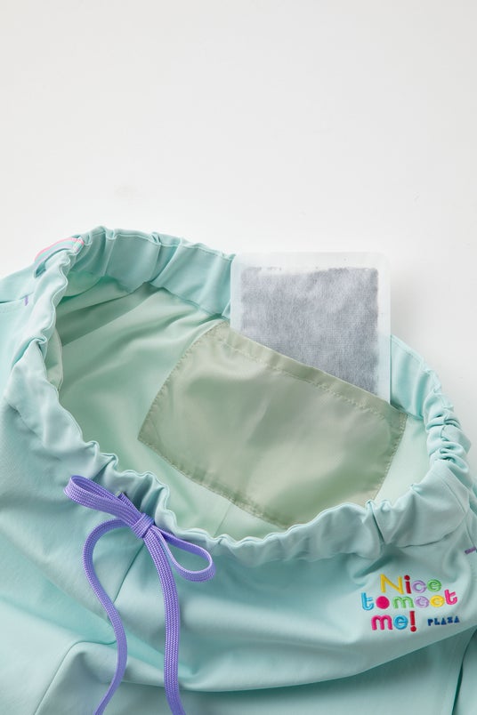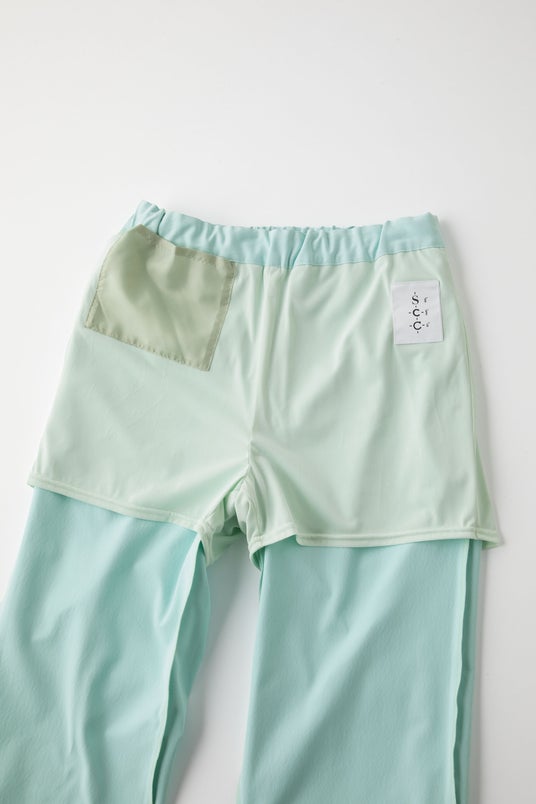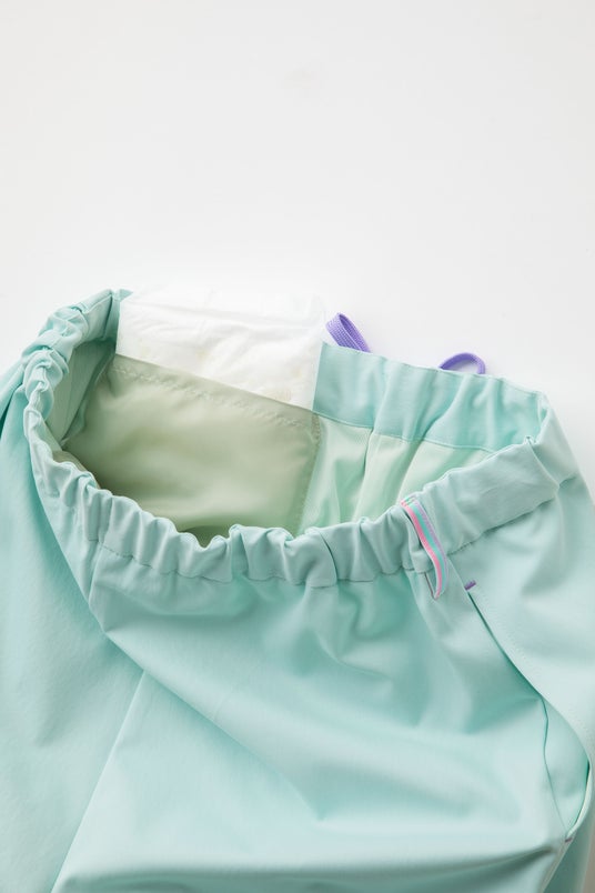 パンツもトップス同様、程よいリラックス感のあるユニセックスデザイン。生理の日にも安心して着用いただけるよう、横漏れを防ぐ裏地仕様。腰元の内側と腰元横の内側には、それぞれナプキンやカイロを収納できる便利なポケットを備えています。カラーに合わせた裏地やステッチ、ウエスト紐、動きやすさをサポートする裾スリットもポイント。さらに、オリジナルカラーのループをあしらい、細部までこだわりを詰め込みました。