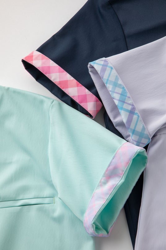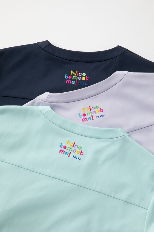 「Nice to meet me!」のテーマである“どんな瞬間も自分らしく”を体現するため、明るくポジティブなカラーリング・配色をラインナップしました。素材には、なめらかで心地よい肌触りに加え、汗をかいてもサラサラ感を保つ吸水速乾性を備えた生地を採用。透けを防ぐフルダル糸を使用し、シワになりにくいノンアイロン仕様に仕上げました。さらに、水溶性の汚れが落ちやすい防汚加工も施しています。