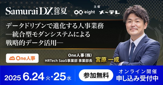 ワンストップ人事労務システム「One人事」を提供するOne人事株式会社(本社:東京都品川区、代表取締役社長:唐沢雄三郎)は、Sansan株式会社が提供する名刺アプリ「Eight」とメ~テレ(名古屋テレビ放送株式会社)が主催するビジネスカンファレンス「SamuraiDX 2025 夏」への登壇が決定したことをお知らせします。