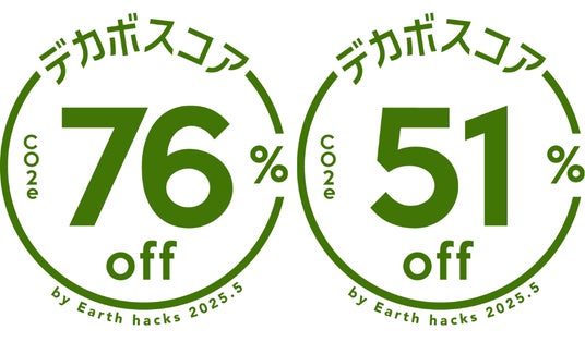 Earth hacks株式会社が提供する、製品やサービスにおけるCO2排出量*の削減率をスコア化した指標です。従来の素材や手法を用いた商品等と比較し、環境に配慮した工夫によって変化するCO2排出量の削減率を表示し、製品やサービスの環境貢献度をひとめで、わかりやすく伝えます。2022年7月に提供を開始し、2025年3月時点で900以上の製品・サービスへ導入されています。マイボトルで『神山湧水珈琲』を飲用した場合のデカボスコアは、アイスが76%、ホットが51%という結果になりました。いずれもプラスチック製のタンブラーをご持参いただいたケースを想定し、使い捨ての容器で飲用する場合と比較した削減率になっています。