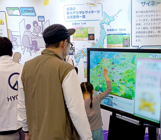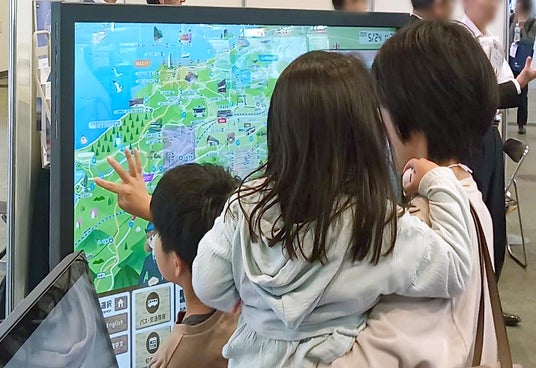 当社ブースでは、加賀温泉駅等に導入されたタッチ式のデジタルサイネージの観光案内「イラストマップ」や、自治体施設等で活用されている番号案内システムなどを展示。観光・案内・広告の機能を一体化したソリューションの導入事例などを紹介し、来場者の方々には、実機を操作しながらその使いやすさや情報提供の分かりやすさをご体感いただきました。