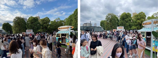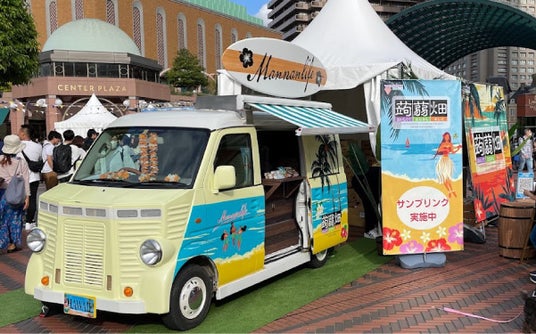 「蒟蒻畑」の特長である、もちむち食感をご体感いただくために、キャラバンカーを構えサンプリングを行います。