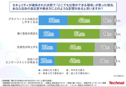 では、セキュリティが確保され、どこでも仕事ができる環境が整った場合、自身の満足度や働き方にどのような影響があると思うのでしょうか。