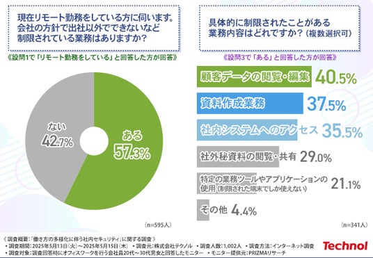 さまざまな理由で出社が必要である背景が明らかになりましたが、リモート勤務において業務の制限などはあるのでしょうか。