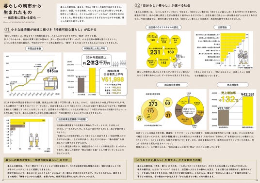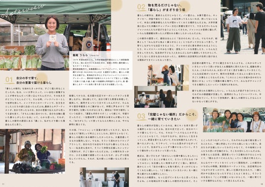 暮らしの朝市代表の飯尾うららへのインタビュー記事も掲載。エピソードやストーリーを軸に朝市の価値を可視化。
