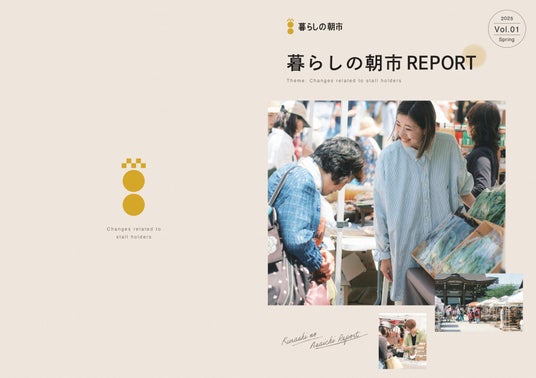 その第一弾として、出店者の変化に焦点を当てた『暮らしの朝市 REPORT Vol.1』を発行。あわせて、公式Webサイト内に新たに「暮らしの朝市とは」ページを公開しました。